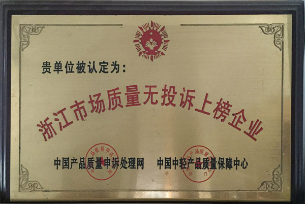浙江生產(chǎn)質(zhì)量無(wú)投訴上榜企業(yè)